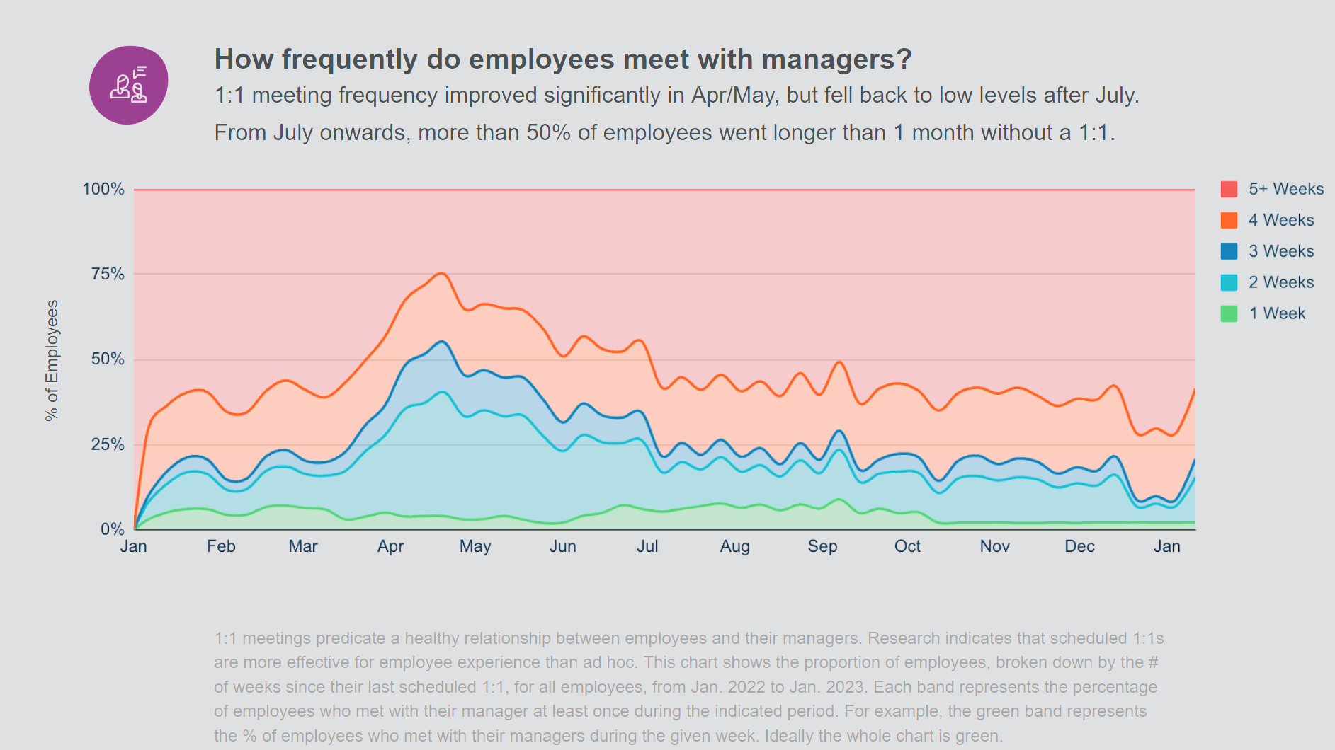 Worklytics provides continuously updated dashboards that reflect how collaboration evolves over time. Leaders can see the immediate impact of organizational changes, new initiatives, or team restructures without waiting for surveys or reviews. This ongoing visibility turns agility into a measurable operating signal rather than a retrospective assessment.