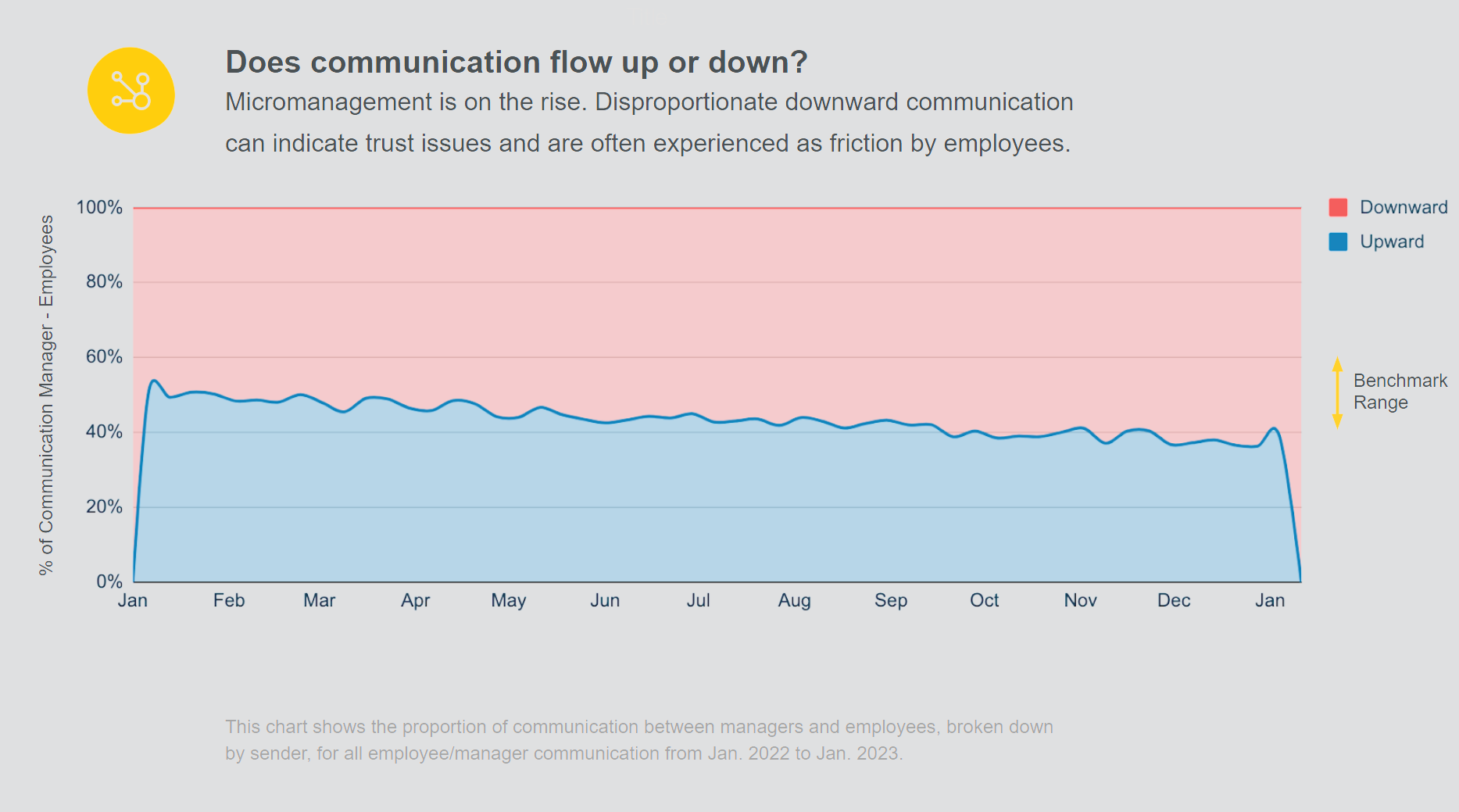 Worklytics benchmarks collaboration and network metrics against comparable organizations. This context helps leaders understand whether their patterns reflect high-performing norms or signal risk. Benchmarks support clearer goal-setting, investment decisions, and progress tracking as collaboration models mature.