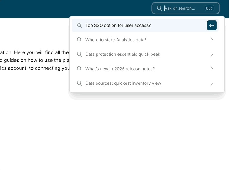 You can now use AI-powered search in the Worklytics documentation portal to quickly find answers, explore metrics, and get guidance—without digging through pages of docs.