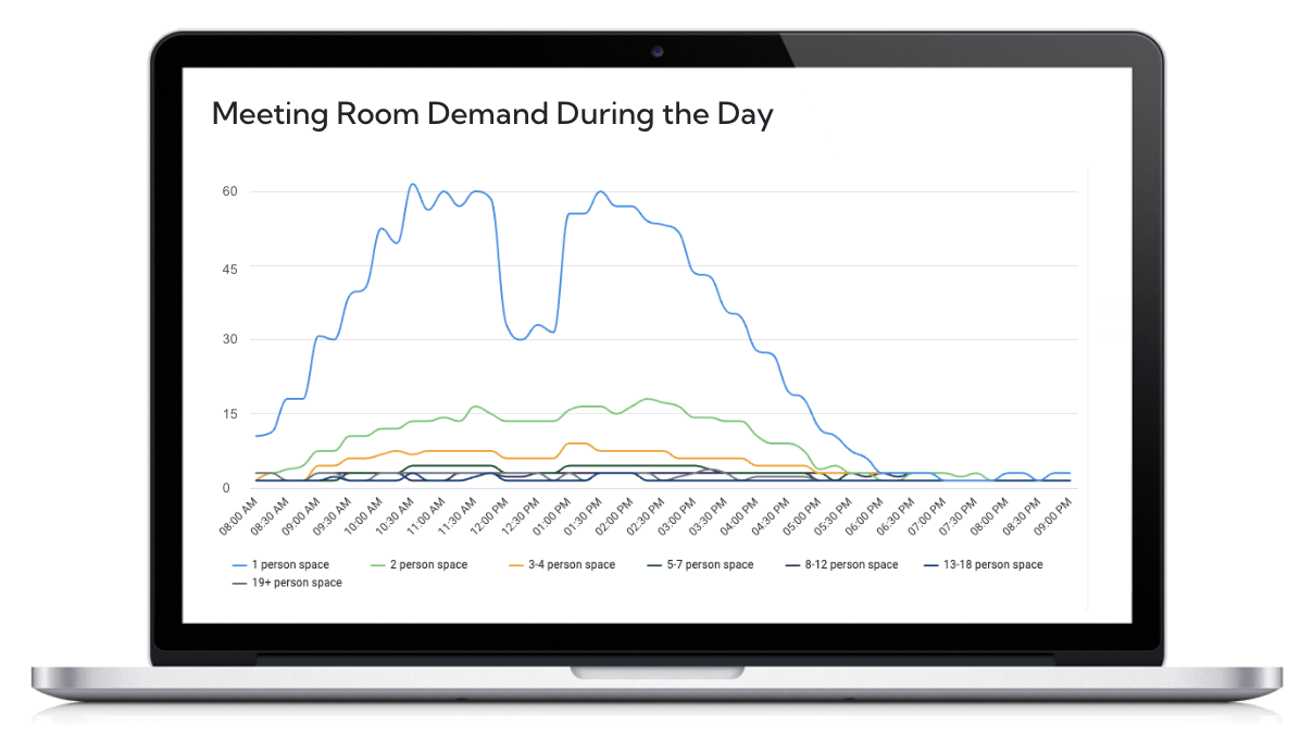 Optimize your conference room sizes — track if demand is shifting towards phone booths or large conference rooms over time.