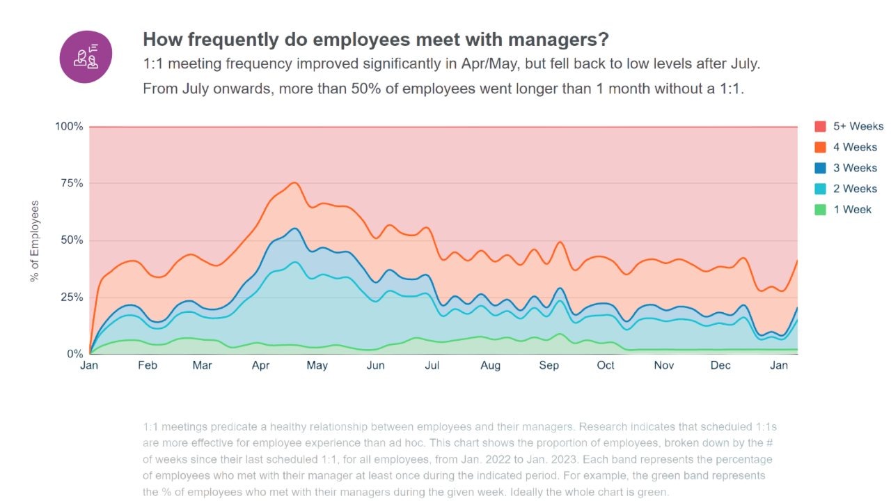 Worklytics positions real-time dashboards as essential for this cadence, stating that real-time work data can detect changes quickly enough to intervene before attrition becomes unavoidable.